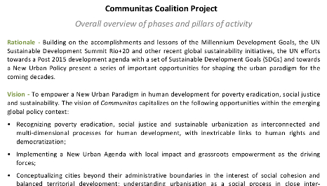 “Urban Sustainability at the Core of Human Development: A Stocktaking Discussion about Ongoing Post-2015 Processes”