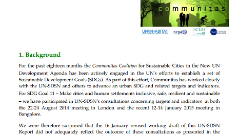 Submission to the UN-SDSN Consultation on “Indicators and a Monitoring Framework for the SDGs”